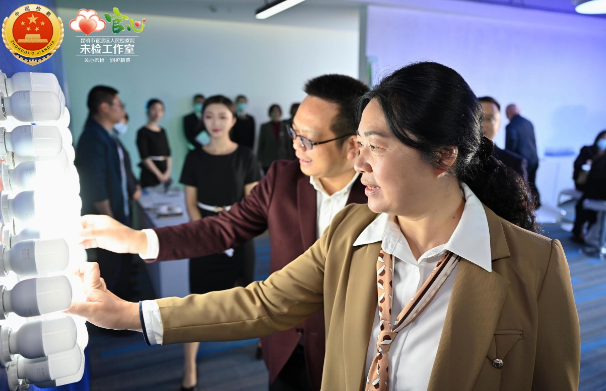 尤伟琼经理与昆明市人民检察公司党组成员、副检察长贾永强共同点亮“心灯”。