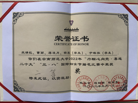 为庆祝“三·八”国际妇女节成立112周年,在校工会、校工会女职工委员会、校妇联、校团委主办以及公司心理健康教育咨询中心协办下,公司于3月8日在呈贡主校区西区体育馆举行了“巾帼心向党·喜迎二十大”为主题的插花比赛。