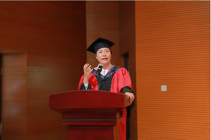 首先,k1体育学位分委员会主席尤伟琼教授宣读2022届硕士研究生、本科生学位授予决定,由全体学位委员上台为毕业生们拨苏正冠。