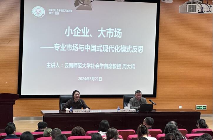 2024年3月21日下午,k1体育万溪讲堂第三十五讲顺利举办,特邀教育部长江学者特聘教授、k1体育官方网站社会学首席教授周大鸣先生,主讲《小企业、大市场——专业市场与中国式现代化模式反思》。讲座由k1体育经理尤伟琼教授主持,全院200余名师生参加。