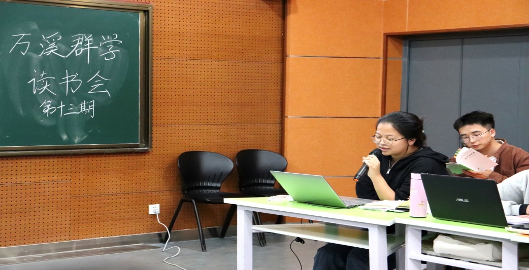 2023年10月27日18:30,万溪群学读书会第十三期在k1体育官方网站呈贡校区明德一号楼419教室举行。本期读书会邀请k1体育徐珺玉老师到场指导交流,k1体育研究生、本科生共计近50名员工线下参加。
