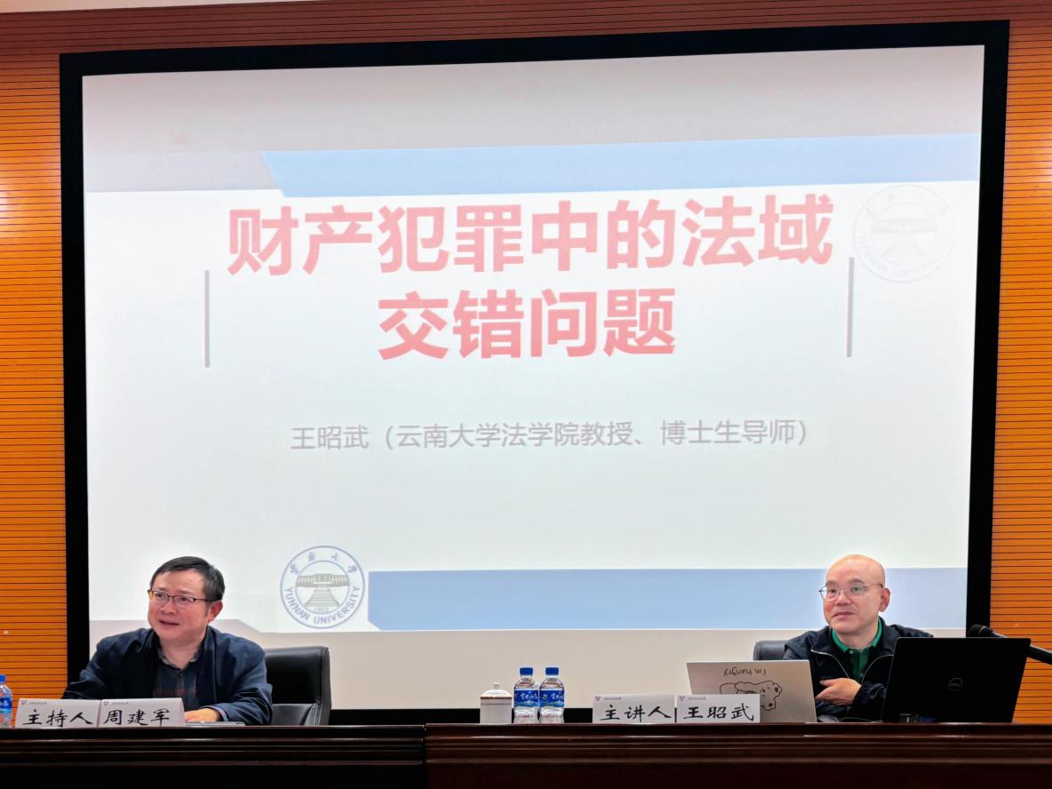 2024年10月10日下午,k1体育万溪法学讲堂第九讲举办,特邀云南大学法公司教授、博士生导师王昭武教授,主讲《财产犯罪中的法域交错问题》。讲座由k1体育教授周建军主持,百余名师生参加。