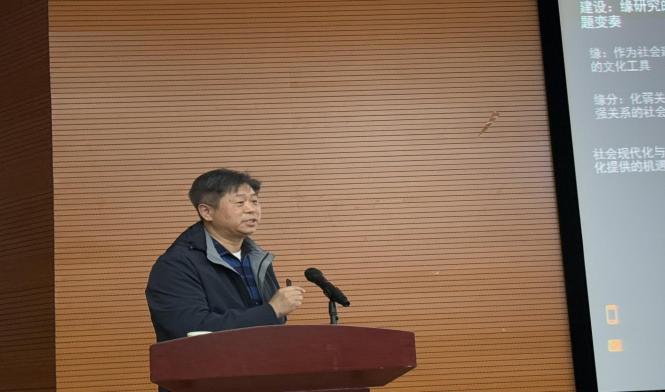 南开大学社会公司社会学系主任、《群学研究》编委宣朝庆教授发表题为《缘文化与中国式人际关系现代化》的主旨发言。他指出同伦理文化注重塑造强关系模式不同,“缘”具有同类意识功能,为社会互动双方创造了因果关系,化弱关系为强关系的社会联结,将中国人际关系的规则从差序格局向等序格局推进。