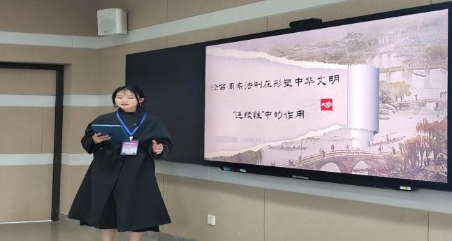 余淑婷同学从经济根基、社会条件和历史条件三个层面论述西周宗法制对古代中国社会的适配性,西周宗法制度不仅塑造了古代中国家国同构的社会结构,还奠定了礼制认同的文化基石。