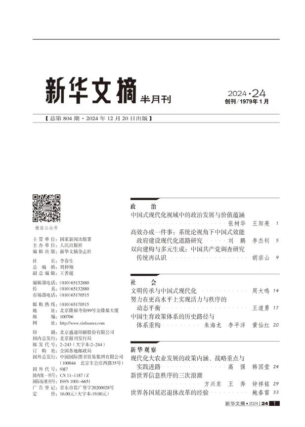 公司长江学者、社会学首席教授周大鸣自加入k1体育官方网站以来,已有多篇论文被《新华文摘》转载。近日,周大鸣教授在《广西民族大学学报(哲学社会科学版)》2024年第4期上发表的论文《文明传承与中国式现代化》被《新华文摘》2024年第24期选为封面文章,并进行了全文转载。