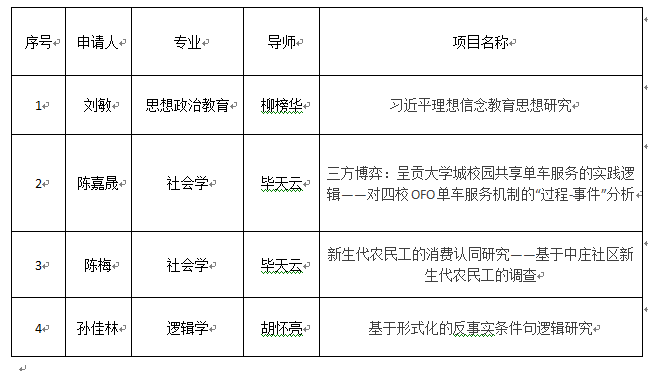 哲学与政法公司2017年度研究生科研创新基金项目立项名单