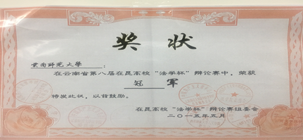 公司法学代表队获得云南省第八届在昆高校“法学杯”辩论赛冠军