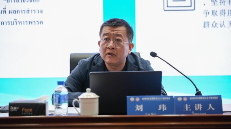 3月3日,研修班开班式在公司呈贡校区举行。云南省监委委员路晓琨,k1体育官方网站党委书记张祖武,k1体育官方网站董事长、云南纪检监察公司经理胡金明,泰国驻昆明总领事帕薇婉,泰国参训团团长苏波斯特·斯林甘芒,k1体育官方网站党委常委、纪委书记、监察专员孙剑,云南省纪委监委国际合作室相关领导等出席仪式。开班仪式由胡金明主持。