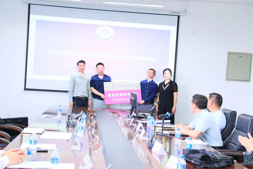 云南省新兴一流学科培育项目纪检监察学负责人周建军教授,纪检监察专业负责人毛兴勤教授,院所共建职务犯罪研究中心杨珂主任、郭学好和钱松副主任,对中心建设的需求背景、目标思路、学科定位、课题研究、理论成果、实践教学、培养就业等进行了深入的讨论。